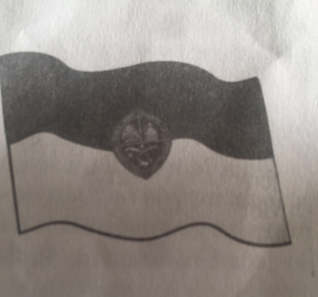 La Bandera ~ Está conformada por u rectángulo de forma horizontal con las mismas dimensiones de la bandera nacional , dividido su espacio en dos franjas , también horizontales. La franja superior es de color azul añil(azul reflejo) y la inferior es de color blanco . En el centro de la bandera y manteniendo las mismas medidas en las partes superior , inferior y laterales va colocado el emblema , bordeando la parte superior del ovala con una línea blanca que lo diferencia del fondos azul reflejo en ese espacio de la bandera . Art.121.
